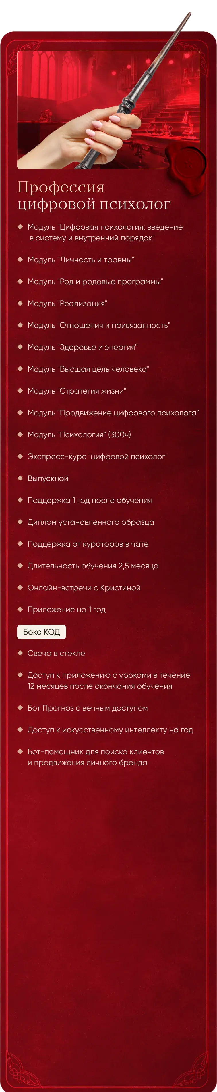 После нее не потребуются дополнительные обучения. У вас будет электронный учебник (конспект обучения), который останется с вами и после факультета. Кураторы помогут глубоко разобраться в теме, чтобы каждый смог достичь результатов.
